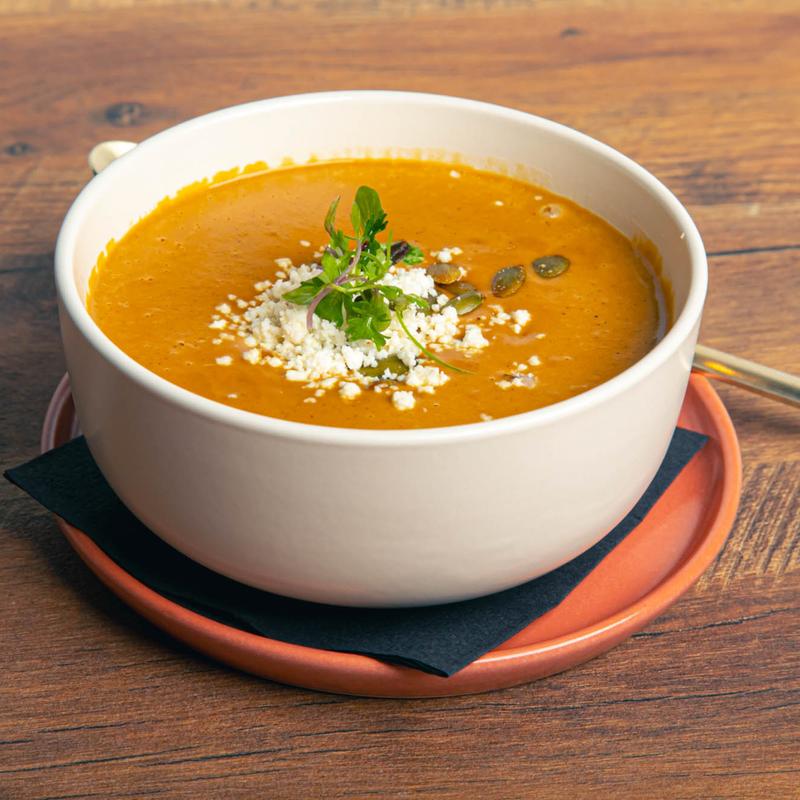 Roasted butternut squash, toasted pepitas, garlic bolillo, queso fresco. Cup $8 | Bowl $14